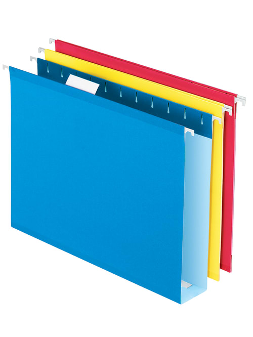 TRU RED Reinforced Hanging File Folders 5-Tab Letter Size BlueGreenRedOrangeYellow 25Box TR18654 Final price 13291329. Hanging Folders - Extra Capacity Box Bottom Hanging Folders - Extra Capacity Box Bottom Built to easily accomodate over-stuffed files Smead extra capacity hanging folders have a flat-bottom that keep thick files from riding up in your drawer. FREE Shipping Orders 45.